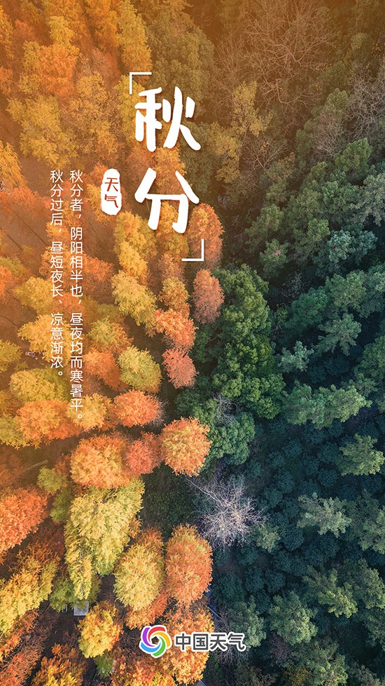 “秋分者,陰陽相半也,晝夜均而寒暑平?!边@一天,太陽直射赤道,南北半球晝夜平分,因此秋分跟春分一樣被稱為“日夜分”。秋分過后,晝短夜長、日漸寒涼。