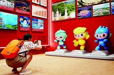 杭州市民在拍攝亞運(yùn)會(huì)吉祥物。新華社發(fā)
