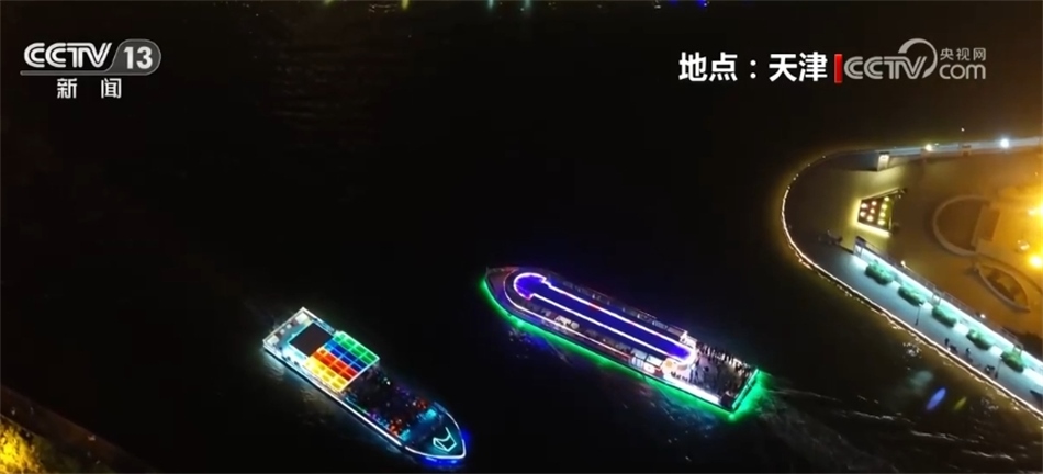 華燈初上,海河兩岸流光溢彩,在天津,夜游海河稱得上是賞月的最佳選擇。北安橋、解放橋等人文景觀與海河游船匯聚成海河上一道流動的風(fēng)景,很多外地游客來天津后都會選擇先坐船看風(fēng)景,航程過半,一曲《花好月圓》響徹海河,把現(xiàn)場氛圍推至高潮。