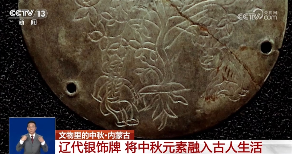 內(nèi)蒙古文物考古研究院珍藏的這塊遼代月宮桂樹仙女銀飾牌,是服裝上的一種飾品,同樣鏨刻了桂樹、嫦娥和玉兔。