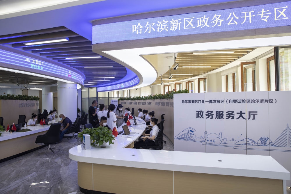2022年7月12日,市民在黑龍江省哈爾濱新區(qū)江北一體發(fā)展區(qū)(自貿(mào)試驗區(qū)哈爾濱片區(qū))政務(wù)服務(wù)大廳辦理業(yè)務(wù)。新華社記者 張濤 攝