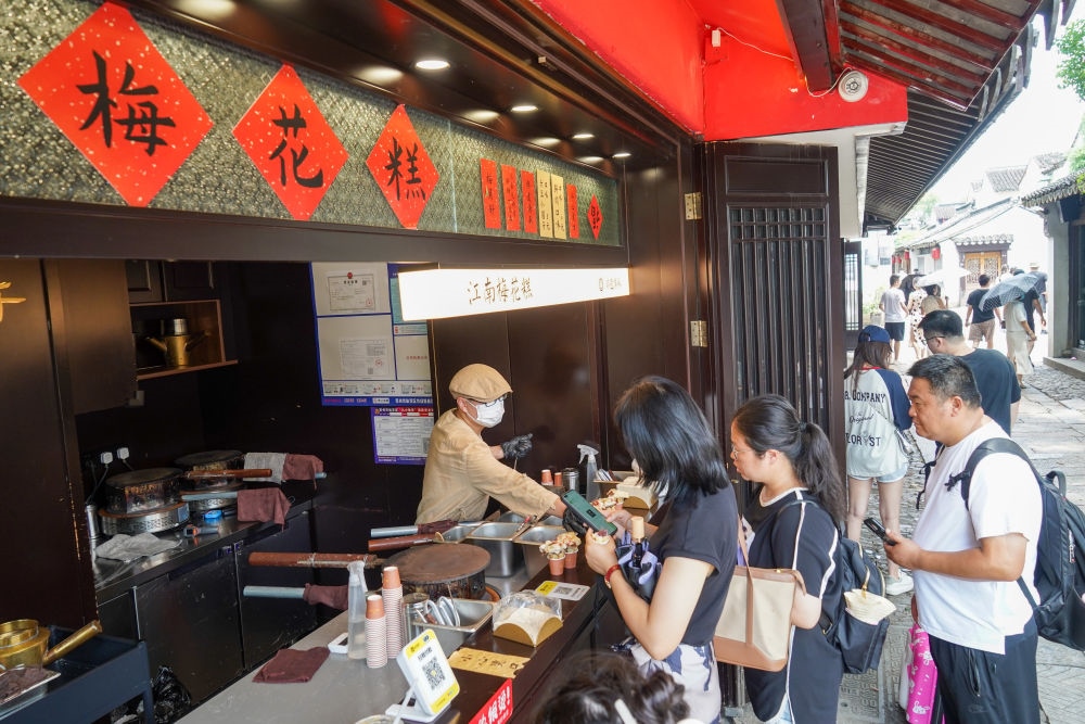 7月6日,游客在平江路一家小吃店選購(gòu)特色小吃。