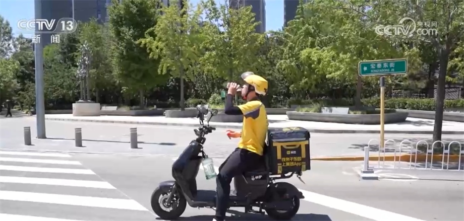某快遞平臺北京金地營業(yè)部負(fù)責(zé)人 萬建波:十二點(diǎn)到(下午)兩點(diǎn)是全天最熱的時候,我們會避開這個時間段,這樣小哥能得到充足的休息,也能將商品及時送達(dá)。