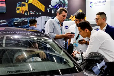 △今年4月15日,采購(gòu)商在廣交會(huì)新設(shè)置的新能源及智能網(wǎng)聯(lián)汽車展區(qū)了解中國(guó)新能源汽車產(chǎn)品。