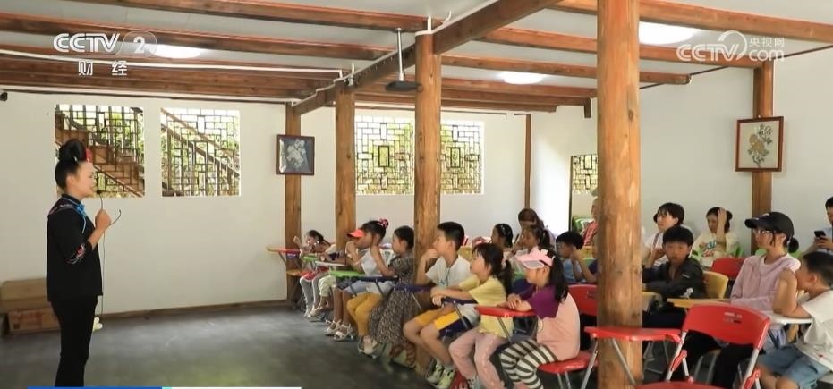 在貴州雷山縣的這個(gè)景區(qū)的研學(xué)基地里,來自全國(guó)各地的孩子們正在認(rèn)真聆聽著民族文化課,唱苗歌、吹蘆笙、跳苗舞,孩子們玩得不亦樂乎。