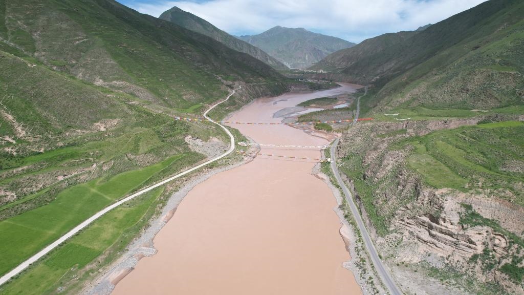 7月22日拍攝的通天河直門達(dá)河段(無(wú)人機(jī)照片)。新華社記者劉詩(shī)平攝