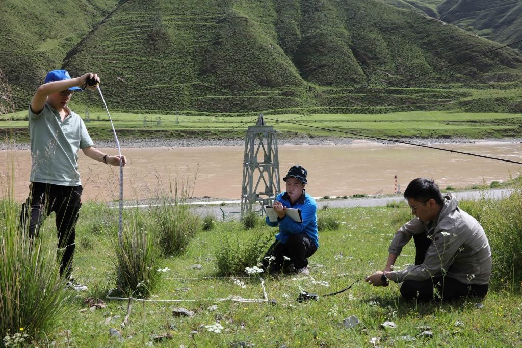 7月22日,長(zhǎng)江科學(xué)院水土保持研究所的科考隊(duì)員在通天河直門達(dá)河段進(jìn)行植被樣方調(diào)查。新華社記者劉詩(shī)平攝