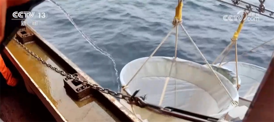 中國第13次北冰洋科學考察隊隊員 萬艾勇:我們主要用于拖浮游生物,它是海洋生態(tài)系統(tǒng)一個關鍵的中間環(huán)節(jié)。今天(當?shù)貢r間7月22日),我們放了(水下)200米。
