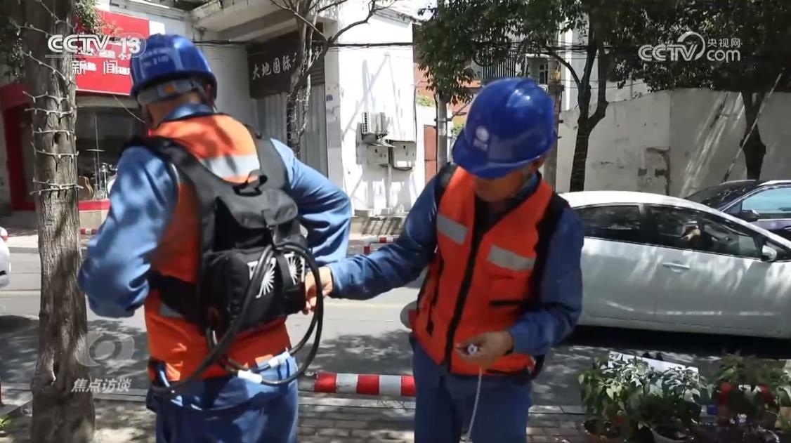 盡管有智能設(shè)備協(xié)助,但有些工作仍然只能靠人工來完成。拍攝當(dāng)天,氣溫超過38℃。工人們巡檢時發(fā)現(xiàn)一處電線桿塔的開關(guān)過熱,如果不及時更換,可能會導(dǎo)致周邊近5000戶居民停電,必須馬上帶電作業(yè)。不過在穿戴絕緣裝備前,大家要先給衣服注水。