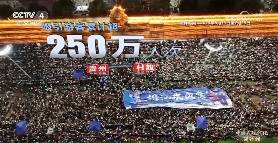 據(jù)統(tǒng)計,自今年5月“村超”開賽至7月上旬,榕江縣累計吸引游客超250萬人次,實現(xiàn)旅游綜合收入28.39億元。“村超”不僅展現(xiàn)了當(dāng)代中國農(nóng)民豐富的精神文化生活,更助推了鄉(xiāng)村振興。
