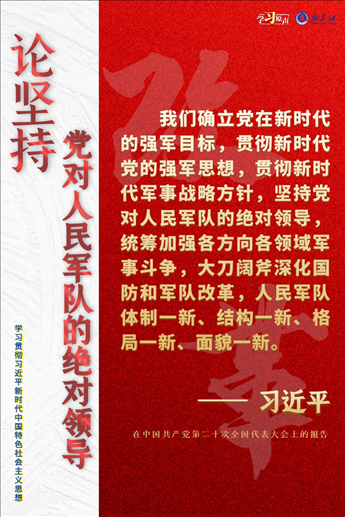 黨對(duì)軍隊(duì)絕對(duì)領(lǐng)導(dǎo)是人民軍隊(duì)建軍之本、強(qiáng)軍之魂。