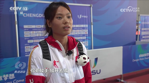 成都大運會中國代表團(tuán)運動員江南:“那時候訓(xùn)練壓力比較大,很累,身心疲憊,心理上、身體上的那種打擊,之后那一年就停訓(xùn)了,退隊了?!?/p>
