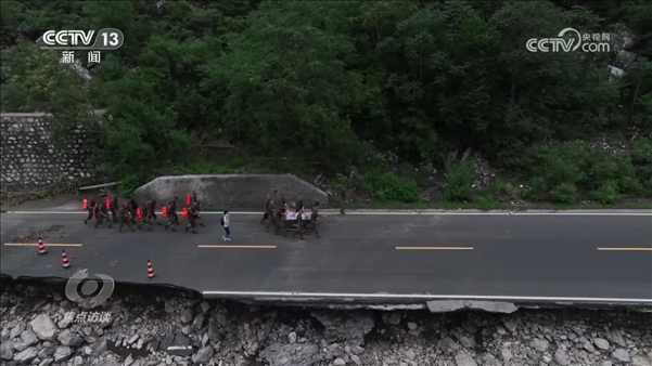 受強(qiáng)降雨影響,8月1日房山區(qū)108國(guó)道周邊25個(gè)村莊斷聯(lián),陸軍第82集團(tuán)軍某合成旅臨危受命,8月3日清晨6點(diǎn),緊急派出30余名偵察兵探尋斷聯(lián)村莊。沿途道路受山洪影響嚴(yán)重,多處中斷,車(chē)輛無(wú)法通行。偵察兵們攜帶衛(wèi)星電話(huà)、無(wú)人機(jī)、繩索等器材徒步前進(jìn),經(jīng)過(guò)4個(gè)小時(shí)左右,11名偵察兵抵達(dá)斷聯(lián)村莊楊林水村。村里的房屋損毀嚴(yán)重,路被沖毀,單個(gè)人通行都特別困難,沒(méi)水沒(méi)電沒(méi)網(wǎng)。