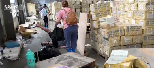 書商 鄒斌:對,要銷毀的。里面有一些滋生的細(xì)菌,也不能再讀了。你們走慢點,這個(地面)很滑。