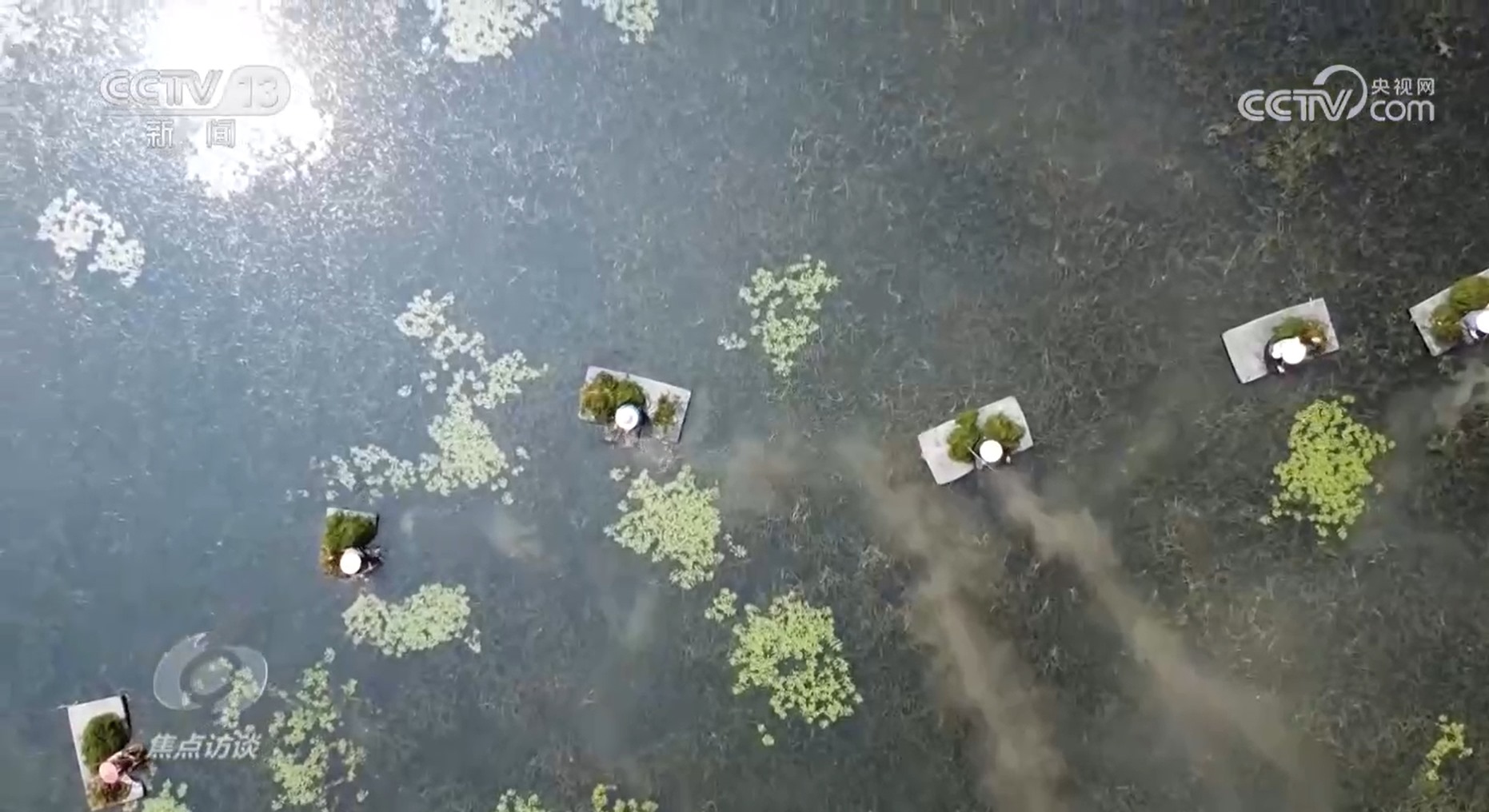 于丹:“采用立體種草,比方說有的深水區(qū)種兩層草,使得整個(gè)水層立體空間都有水草分布,另外從深水區(qū)到沿岸帶,沉水植物到浮葉植物到挺水植物到河塘?!?/p>