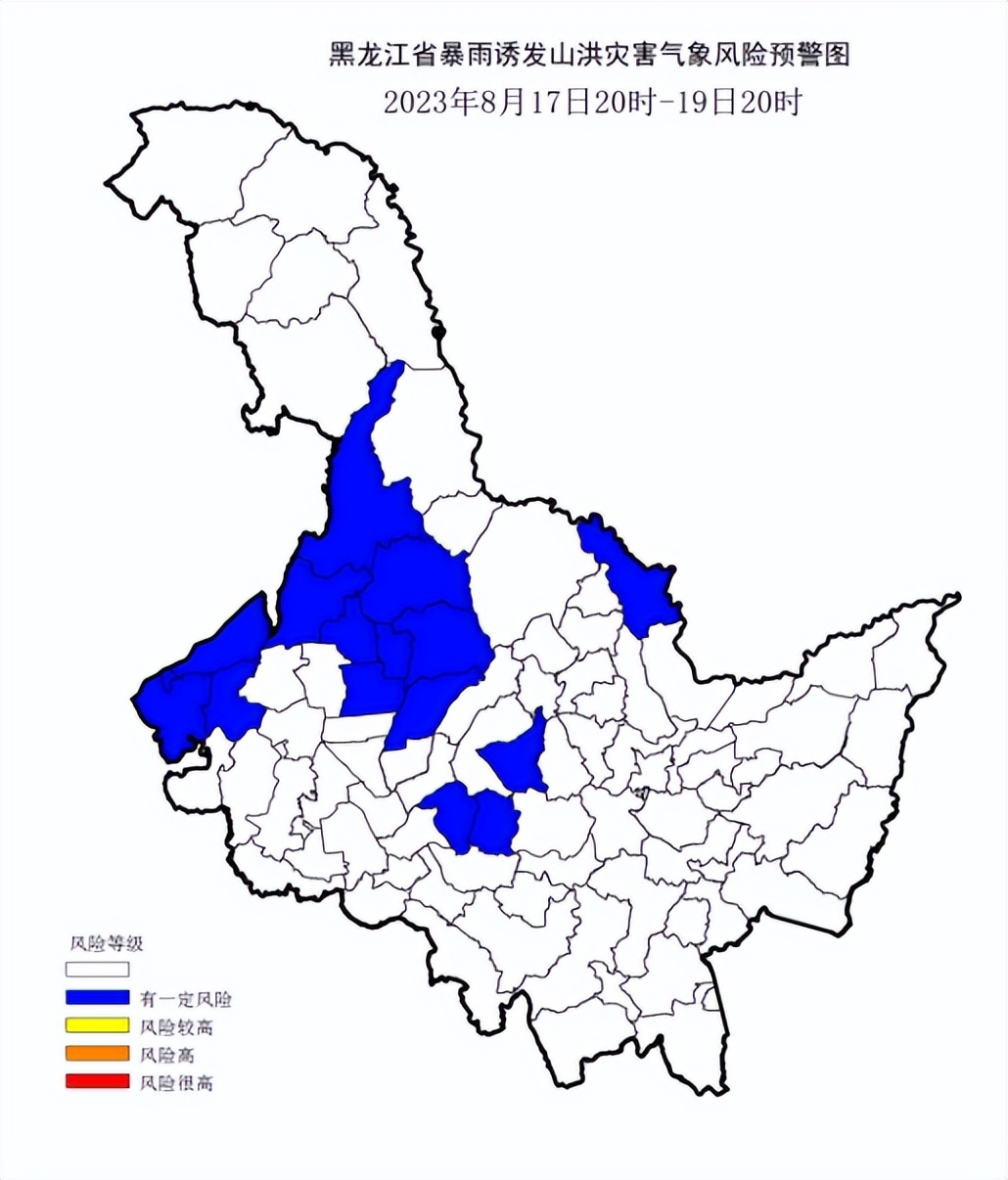 黑龍江省防汛抗旱指揮部辦公室、黑龍江省水利廳、黑龍江省氣象局8月17日20時聯(lián)合發(fā)布藍色山洪災害氣象風險預警:?