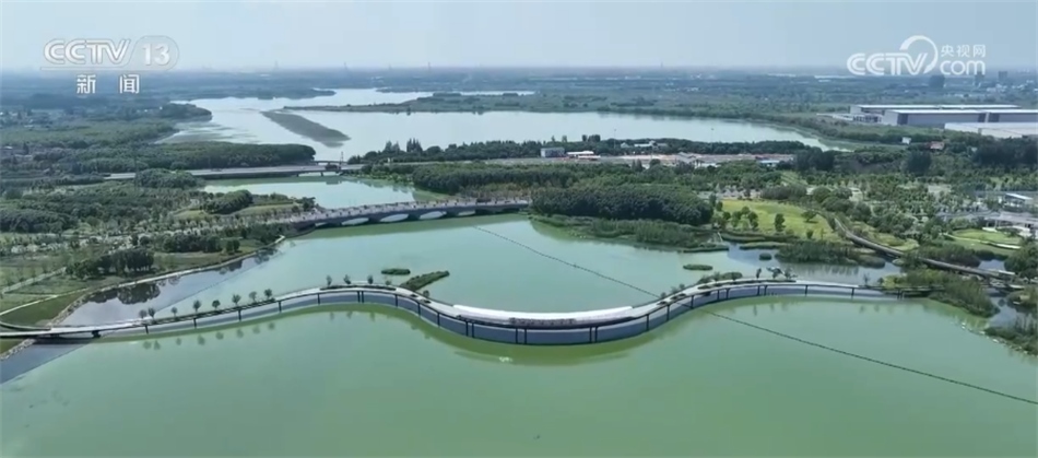 比如,兩地工作人員實(shí)現(xiàn)了聯(lián)合巡河、管護(hù)、治理。元蕩湖生態(tài)岸線的相關(guān)建設(shè),包括我所在的這個(gè)公園和步行橋也是兩地統(tǒng)一審批、接力建設(shè)起來(lái)的。目前,元蕩湖水質(zhì)已經(jīng)達(dá)到國(guó)家考核目標(biāo),生態(tài)岸線占比超過(guò)80%。在湖心的位置有一處水草聚集區(qū)域,船是不會(huì)靠近的,這是人為劃定的水上鳥(niǎo)兒的保育區(qū),能看見(jiàn)不少水鳥(niǎo)在那里嬉戲飛翔。鏡頭拉近,有的鳥(niǎo)兒已經(jīng)在這里筑巢產(chǎn)卵,把家安在了元蕩湖,水質(zhì)好不好,鳥(niǎo)兒最有發(fā)言權(quán)。現(xiàn)在,元蕩湖在水系連通、河道清障、岸坡整治、水源涵養(yǎng)等方面實(shí)現(xiàn)了統(tǒng)一推進(jìn)。