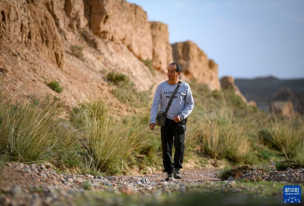 8月20日,董海寧徒步巡查賀蘭山沿線(xiàn)的明長(zhǎng)城永寧段。新華社記者 馮開(kāi)華 攝