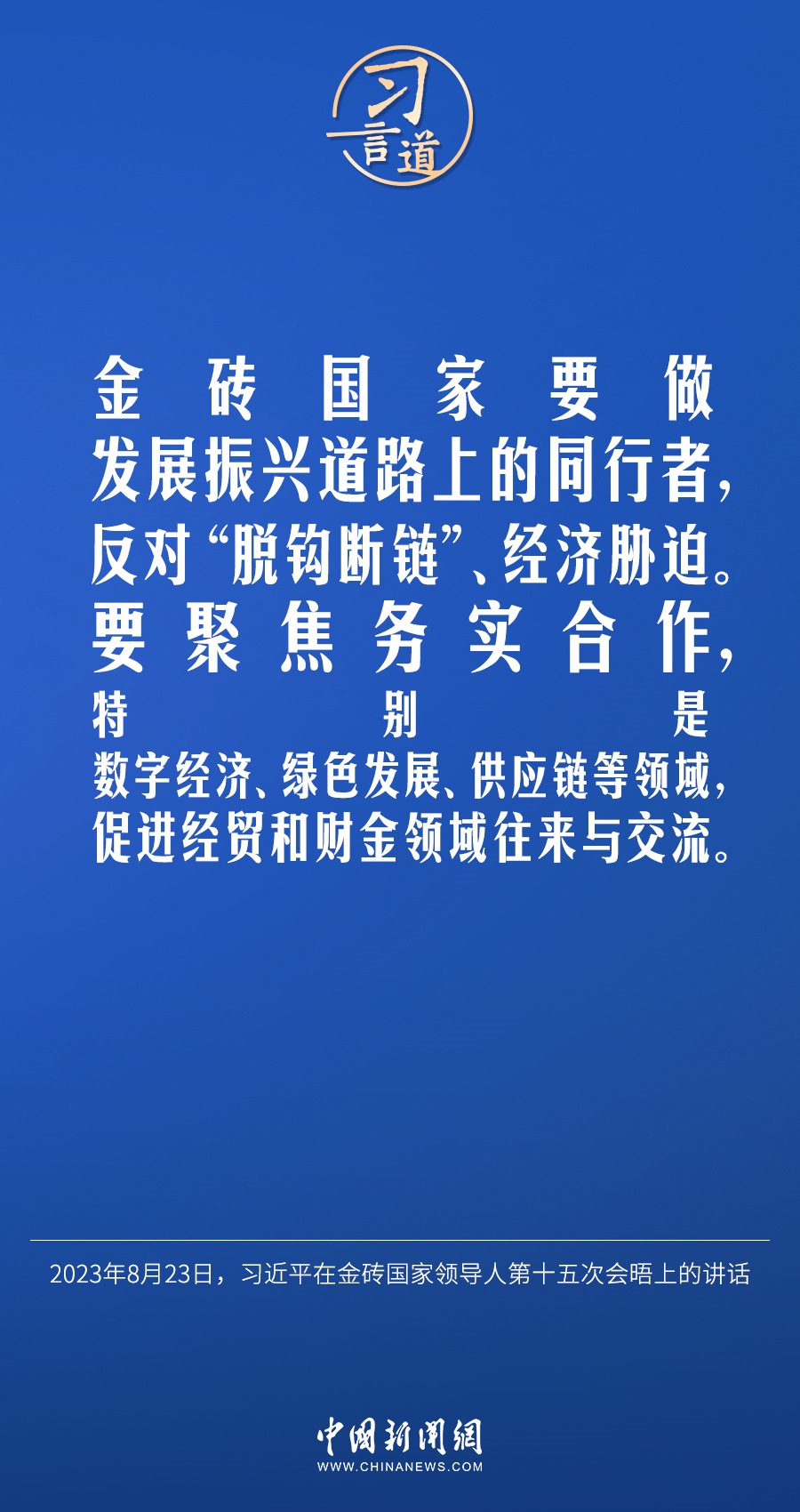 當(dāng)?shù)貢r(shí)間8月23日,中國(guó)國(guó)家主席習(xí)近平在約翰內(nèi)斯堡出席金磚國(guó)家領(lǐng)導(dǎo)人第十五次會(huì)晤并發(fā)表重要講話。習(xí)近平指出——