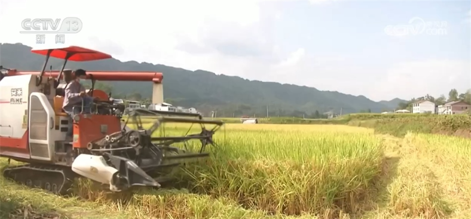 在達(dá)州市宣漢縣天生鎮(zhèn)新芽村,金燦燦的稻穗隨風(fēng)搖曳,稻田里,兩臺(tái)大型收割機(jī)正在穿梭作業(yè)。