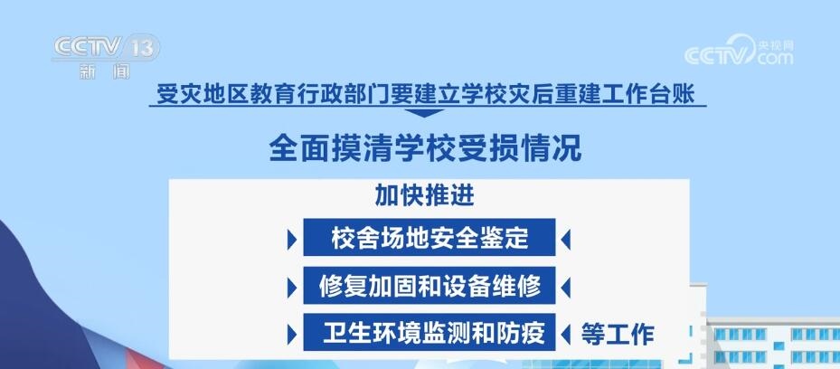 教育部強(qiáng)調(diào),要慎終如始做好災(zāi)后恢復(fù)重建各項(xiàng)工作,穩(wěn)慎做好受災(zāi)師生安置慰問(wèn)、補(bǔ)償救助等工作。受災(zāi)地區(qū)教育行政部門要建立學(xué)校災(zāi)后重建工作臺(tái)賬,全面摸清學(xué)校受損情況,加快推進(jìn)校舍場(chǎng)地安全鑒定、修復(fù)加固和設(shè)備維修、衛(wèi)生環(huán)境監(jiān)測(cè)和防疫等工作。確實(shí)在開(kāi)學(xué)前不能完成災(zāi)后重建的,要立足實(shí)際采取臨時(shí)轉(zhuǎn)移就學(xué)等舉措,全力保障正常開(kāi)學(xué)。各地各校要一體推進(jìn)防汛救災(zāi)和校園安全治理,健全校園安全常規(guī)檢查機(jī)制,持續(xù)深入排查整治風(fēng)險(xiǎn)隱患,有效防范原發(fā)、誘發(fā)性自然災(zāi)害和次生安全風(fēng)險(xiǎn)。