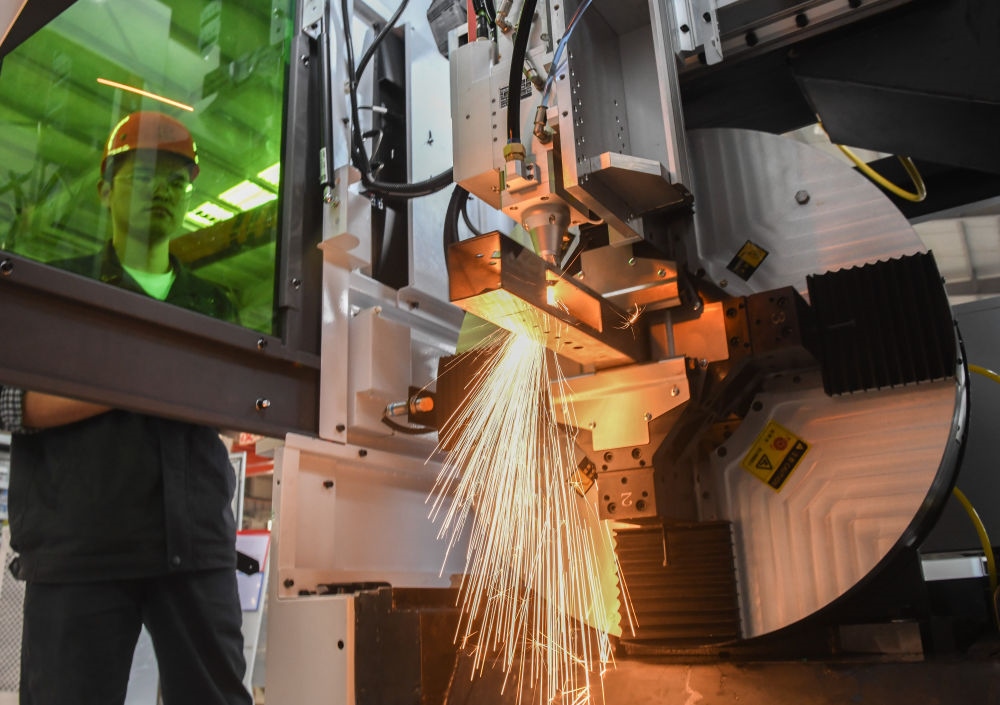 湖北武漢東湖高新區(qū),“中國光谷”。走進(jìn)華工科技產(chǎn)業(yè)股份有限公司,激光切割機(jī)行云流水般在鋼材上雕琢,噴濺出耀眼火花。公司董事長馬新強(qiáng)介紹,從首套國產(chǎn)化數(shù)控激光切割機(jī),到首臺高性能光纖激光器,華工科技已創(chuàng)下60多項國內(nèi)行業(yè)第一。