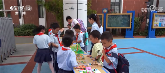 在江西贛州的這所小學(xué),開學(xué)第一天,形態(tài)各異的機(jī)器人分布在校園各地,孩子們既可以聽老師講解機(jī)器人知識(shí),也可以動(dòng)手與機(jī)器人互動(dòng)體驗(yàn)。學(xué)校還專門設(shè)置了科技作品成果展區(qū),學(xué)生們將假期里動(dòng)手制作的科技小作品展示出來,與其他同學(xué)交流學(xué)習(xí)。