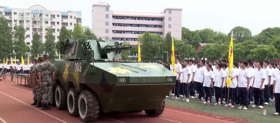 在湖南攸縣,當地人武部為千余名高一學生開展國防教育武器裝備展示。官兵為學生們介紹了武器裝備性能和使用方法,并指導大家體驗了一把手握真槍的感覺。