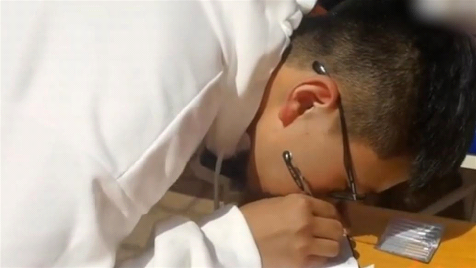 8月30日,山東中醫(yī)藥大學(xué)針灸推拿學(xué)院迎來(lái)一個(gè)特殊的新生。因?yàn)榍嗌倌挈S斑變性,欒新業(yè)從初二開(kāi)始就只能借助放大鏡讀書(shū)。今年他以562分的成績(jī)考進(jìn)山東中醫(yī)藥大學(xué)。