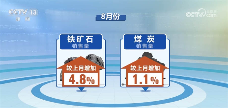 另外,從市場(chǎng)需求來(lái)看,8月份大宗商品銷(xiāo)售指數(shù)為103.5%,較上月回升0.1個(gè)百分點(diǎn),顯示終端市場(chǎng)及貿(mào)易商的采購(gòu)意愿有所增強(qiáng),市場(chǎng)需求整體向好。從主要商品看,除化工產(chǎn)品外,其余品種銷(xiāo)售量均呈現(xiàn)增長(zhǎng)態(tài)勢(shì)。其中,鋼鐵、成品油和有色金屬銷(xiāo)售量較上月分別增加3.8%、4.4%和3.6%,增速較上月分別加快1.0、3.0和1.7個(gè)百分點(diǎn),鐵礦石和煤炭銷(xiāo)售量較上月分別增加4.8%和1.1%。