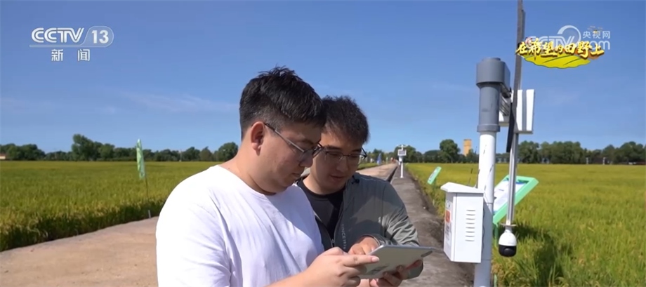 閆家崗農(nóng)場(chǎng)黨委書記 張雅南:咱們現(xiàn)在手里拿的這塊屏,就相當(dāng)于在我們田間地頭建設(shè)了一個(gè)農(nóng)業(yè)的智慧大腦。您看我手邊指的這一個(gè),下面就是視覺傳感器,它是做什么用的?它就是在水稻的不同生育期負(fù)責(zé)拍攝水稻生長(zhǎng)的狀態(tài)。原來人工巡田,現(xiàn)在通過智慧大腦來巡田、來決策,所以更科學(xué)、更高效。