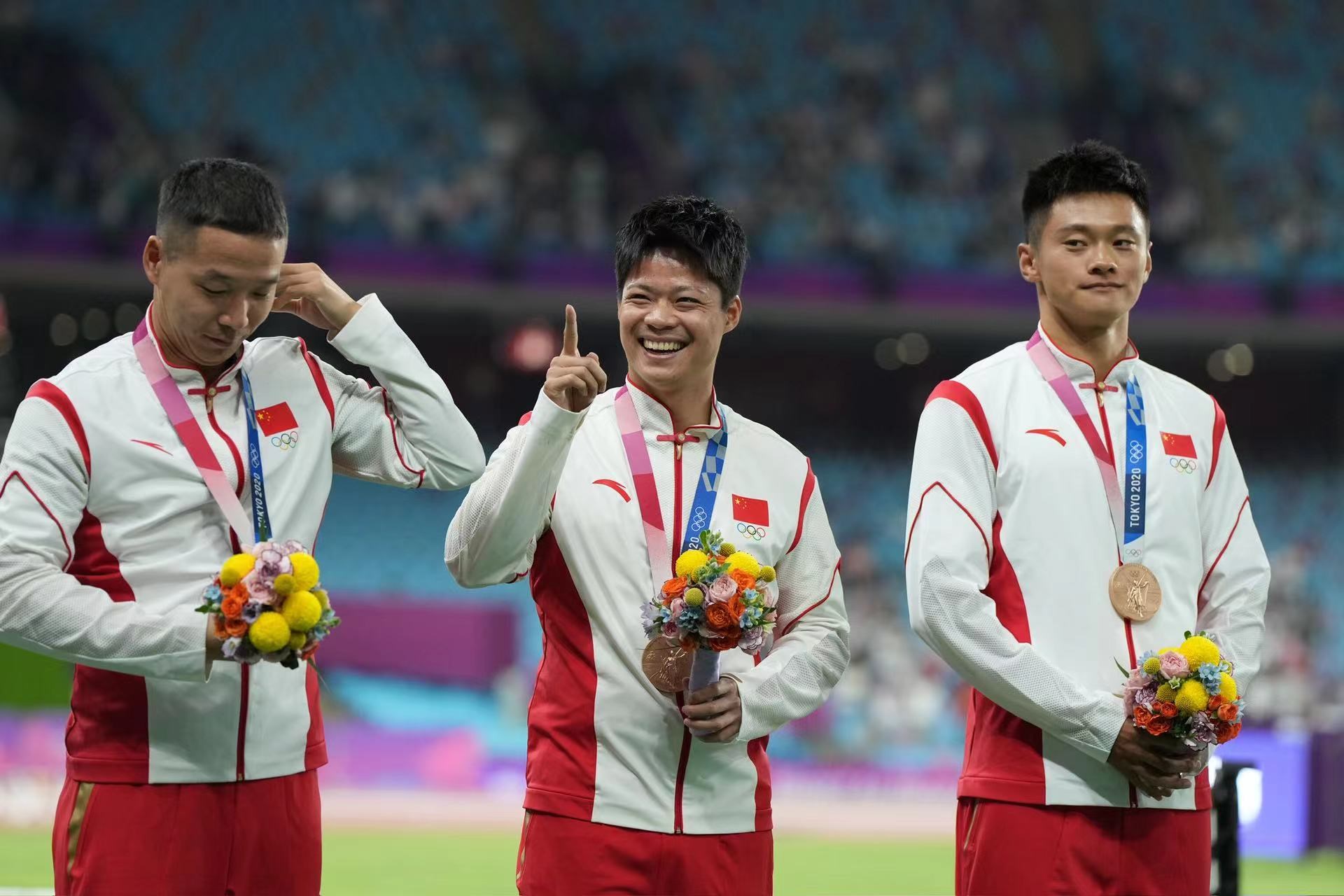 蘇炳添、謝震業(yè)、吳智強(qiáng)、湯星強(qiáng)參加了東京奧運(yùn)會田徑男子4×100米接力決賽,并在比賽中第四個(gè)沖過終點(diǎn)。去年2月,國際體育仲裁法庭裁定英國運(yùn)動員烏賈在東京奧運(yùn)會期間違反了反興奮劑條例,取消英國隊(duì)男子4x100米接力成績并收回所獲銀牌,中國男子4x100米接力隊(duì)因此遞補(bǔ)獲得銅牌。這是中國男子4x100米接力隊(duì)首次在奧運(yùn)會上獲得獎(jiǎng)牌。
