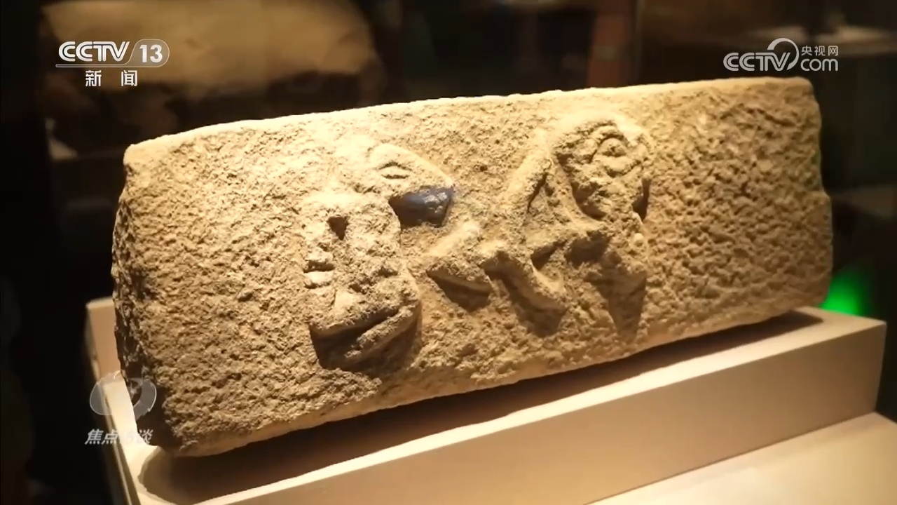 龜甲出土于河南省漯河市舞陽縣賈湖遺址,當(dāng)時遺址內(nèi)發(fā)現(xiàn)17例刻在龜甲、骨器上的符號,內(nèi)容都與占卜相關(guān),被稱為賈湖刻符。符號圖畫為我們揭開了祖先們當(dāng)時的生活圖景。“人射馬石雕”出土于陜西榆林神木市石峁遺址,在距今約4000年前,先人們以浮雕的方式成圖,一人持弓箭射馬,弓、弦、箭一樣不少。