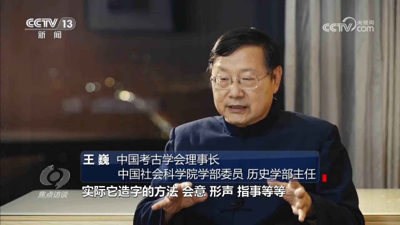 中國考古學(xué)會理事長、中國社會科學(xué)院學(xué)部委員、歷史學(xué)部主任王巍:“它有豐富的記載功能,商代的甲骨文是非常成熟的文字體系,它的造字方法、會意、形聲、指事等,它的造字方法已經(jīng)非常成熟了。正是因為有漢字,我們可以知道各個時代的政治、經(jīng)濟、文化、社會的記錄?!?/p>