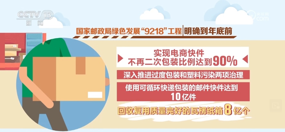 2023年年底前,按照國家郵政局實施的綠色發(fā)展“9218”工程要求,電商快件不再二次包裝比例將達到90%,深入推進過度包裝和塑料污染兩項治理,使用可循環(huán)快遞包裝的郵件快件達到10億件,回收復用質量完好的瓦楞紙箱8億個。