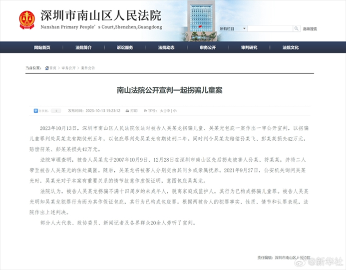 ·孫海洋兒子被拐案一審宣判:兩名被告分別被判5年、2年。