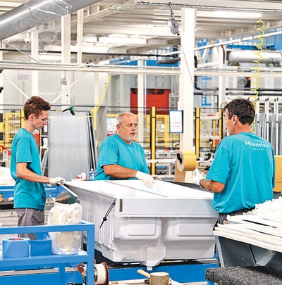 中國家電企業(yè)海信集團(tuán)位于塞爾維亞瓦列沃的冰箱工廠今年9月正式投產(chǎn)運(yùn)營。圖為工人在生產(chǎn)線上忙碌。本報(bào)記者 劉仲華攝