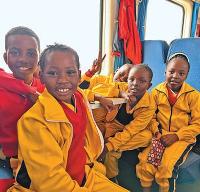 蒙內(nèi)鐵路是中國與肯尼亞共建“一帶一路”標(biāo)志性工程。圖為肯尼亞學(xué)生高興地乘坐列車出行。本報(bào)記者 張志文攝