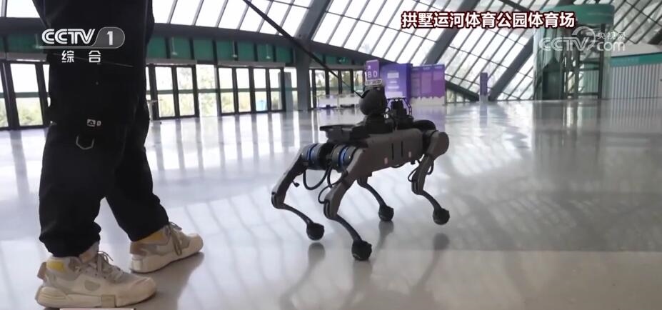 在盲人足球的比賽場地——拱墅運河體育公園體育場,由西湖大學研發(fā)的電子導盲犬“小西”已經(jīng)就位。它不僅把整個場館的地圖銘記于“心”,還能“聽懂”中英雙語,甚至還能規(guī)劃最佳路線,就連這根導盲繩也充滿科技含量。通過繩端傳感器,可以調節(jié)電子導盲犬的行走速度,為盲人運動員和視障觀眾提供安全、高效、細致的服務。