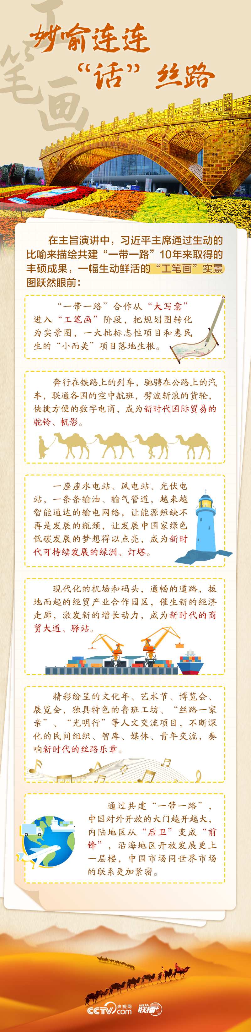 站在共建“一帶一路”倡議走過十年這個(gè)標(biāo)志性節(jié)點(diǎn),這幅“工筆畫”呈現(xiàn)怎樣的實(shí)景圖?高質(zhì)量共建“一帶一路”如何再出發(fā)?央視網(wǎng)《聯(lián)播+》欄目從五個(gè)維度為您速讀習(xí)主席講話,與您一同學(xué)習(xí)。