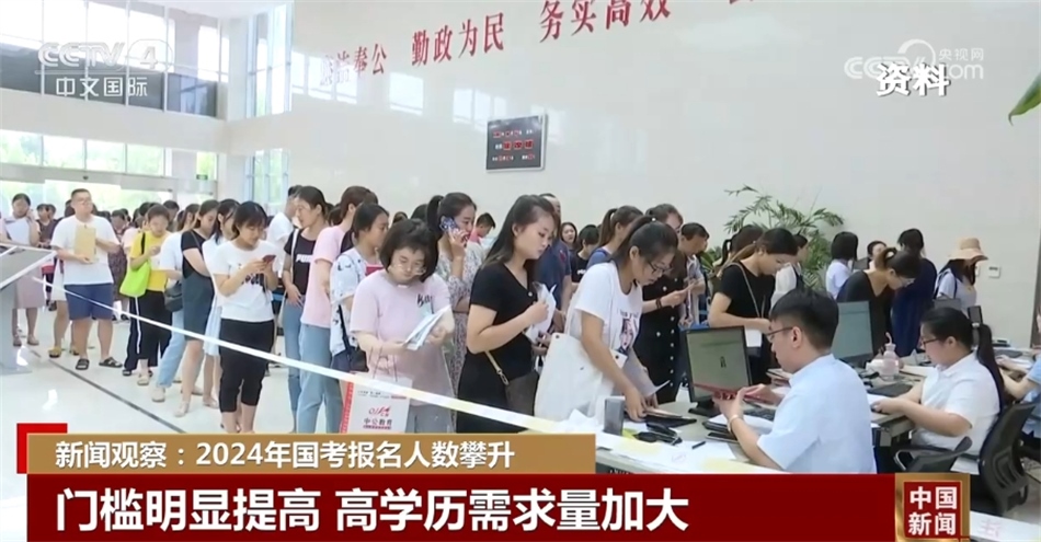 央視網(wǎng)消息:統(tǒng)計數(shù)據(jù)顯示,2024年國考報名人數(shù)逐漸攀升。截至10月22日16時,1744711人提交報名申請,比去年同期增加22萬余人,其中1390420人通過審核。目前,平均競爭比為35比1,略高于去年同期競爭水平。