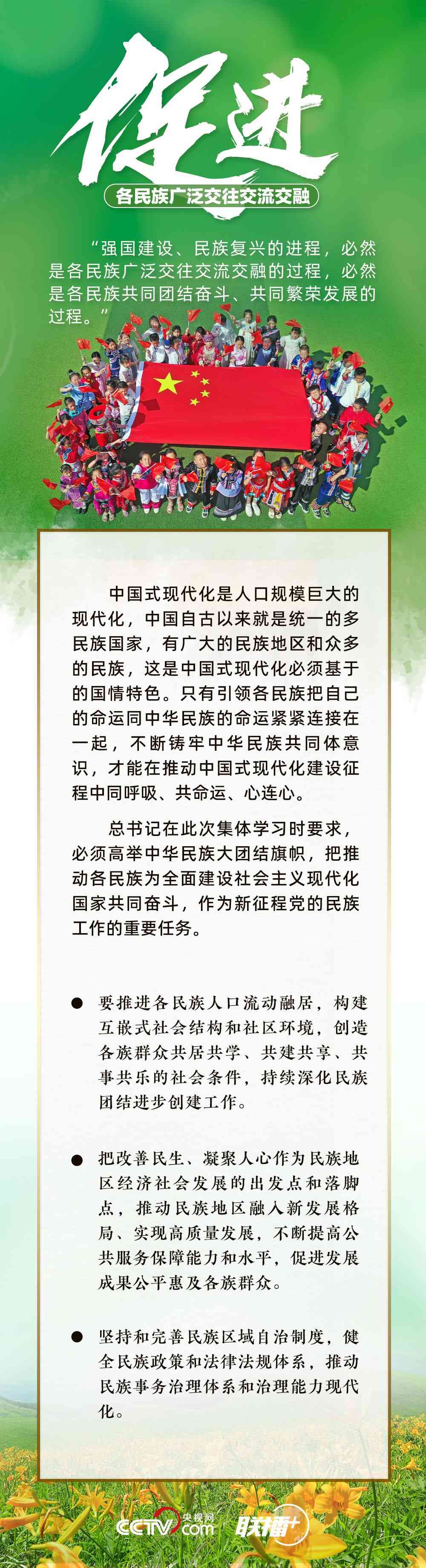 鑄牢中華民族共同體意識(shí)是黨的民族工作和民族地區(qū)各項(xiàng)工作的主線。如何推進(jìn)新時(shí)代黨的民族工作高質(zhì)量發(fā)展?總書(shū)記有何最新部署?央視網(wǎng)《聯(lián)播+》與您一起了解。