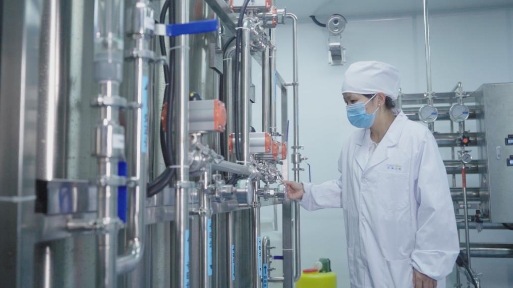 天津華龕生物科技有限公司員工在操作制水機(jī)設(shè)備。新華社記者 王寧 攝
