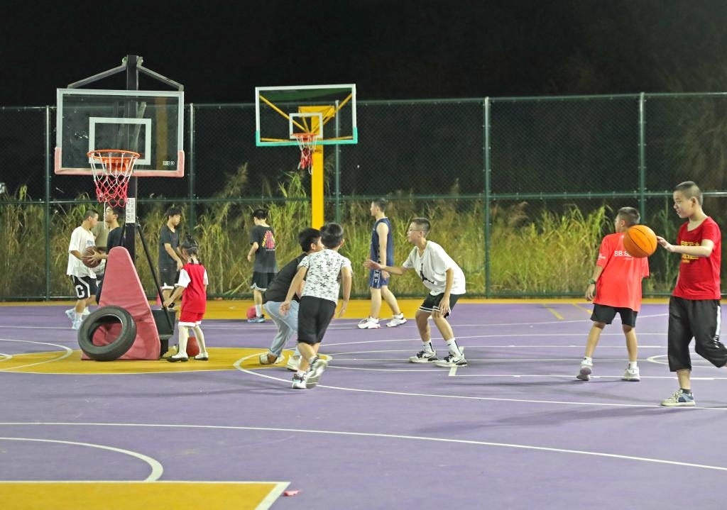 2023年7月5日,孩子們在南寧邕江邊一個籃球場打球。新華社記者 周華 攝