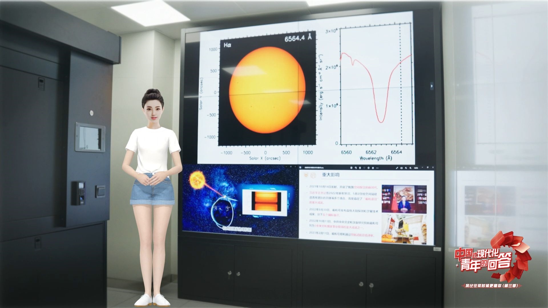 什么是Hα譜線?AI數(shù)字人小青解釋:“Hα譜線是太陽最強最粗的吸收線之一。通過研究太陽Hα譜線,可以巧妙反推出太陽的速度、溫度、密度等信息,進而能研究太陽低層大氣的等離子體運動和爆發(fā)現(xiàn)象背后的機理,對太陽爆發(fā)活動作出預報?!?/p>