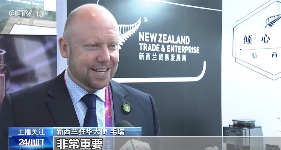新西蘭駐華大使 毛瑞:進博會肯定是個好渠道,新西蘭企業(yè)可以發(fā)布新產(chǎn)品,展示給經(jīng)銷商和潛在消費者。新西蘭和中國貿(mào)易合作歷史悠久,中國市場對我們非常重要,中國是我們最大的貿(mào)易伙伴,我們?nèi)匀幌M袊谖磥砝^續(xù)成為新西蘭最大的貿(mào)易伙伴。