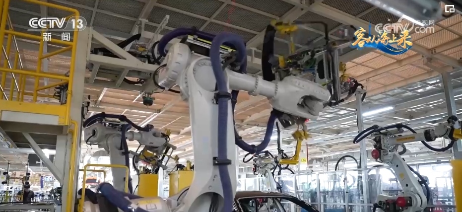 總臺央視記者 高媛:平均每1分鐘就會下線一輛車,在這個智慧工廠里,有1000多臺柔性機器人實現(xiàn)焊接100%自動化,這樣的智能制造能力就是它高效的“密碼”。