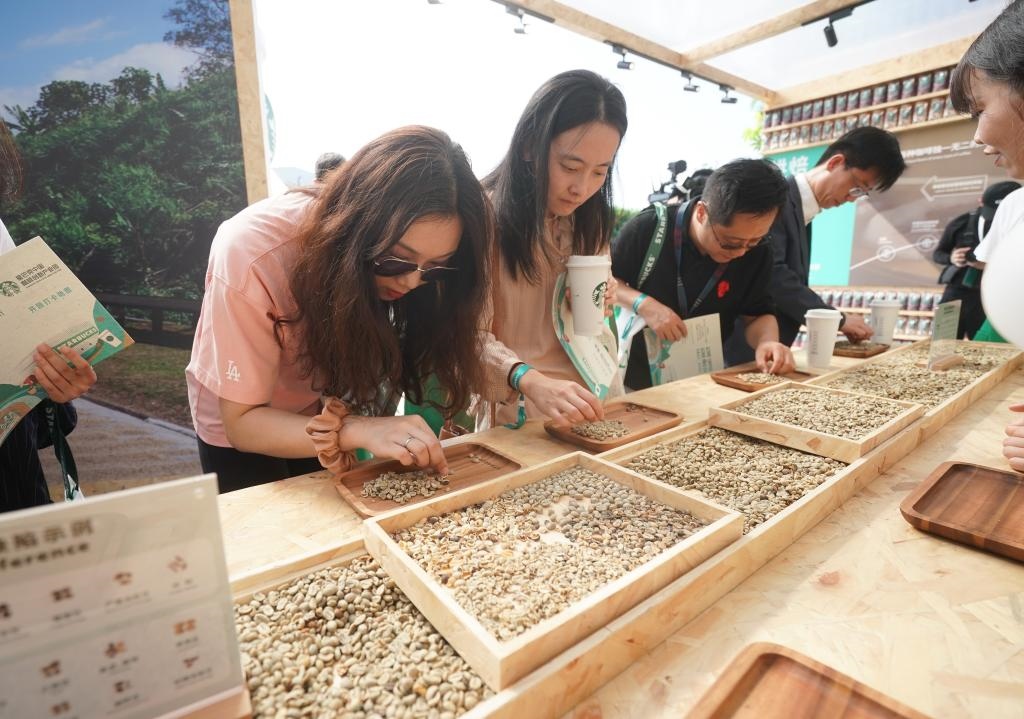 9月19日,在星巴克中國咖啡創(chuàng)新產業(yè)園開園儀式現場,來賓在體驗挑揀咖啡生豆。當日,星巴克中國咖啡創(chuàng)新產業(yè)園在江蘇昆山落成投產。