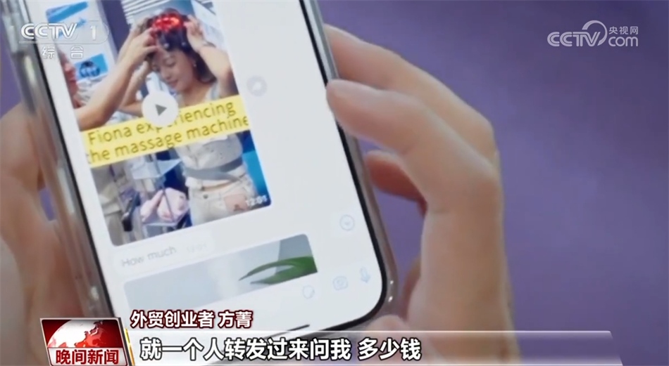 外貿(mào)創(chuàng)業(yè)者 方菁:剛剛?cè)昼娋桶亚f老師給我拍的視頻剪出來(lái)了,現(xiàn)在往我們?nèi)豪锶グl(fā)一發(fā)。你看現(xiàn)在,我還什么都沒(méi)有說(shuō),就一個(gè)人轉(zhuǎn)發(fā)過(guò)來(lái)問(wèn)我,多少錢(qián)。