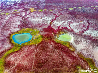 2023年11月13日,初冬時(shí)節(jié),江蘇鹽城東臺(tái)條子泥濕地,成片的蒿子草造就的“紅海灘”,與遷徙的候鳥(niǎo)、棲息的麋鹿以及潮汐形成的地貌,勾勒出一幅幅濕地的自然生態(tài)美圖。